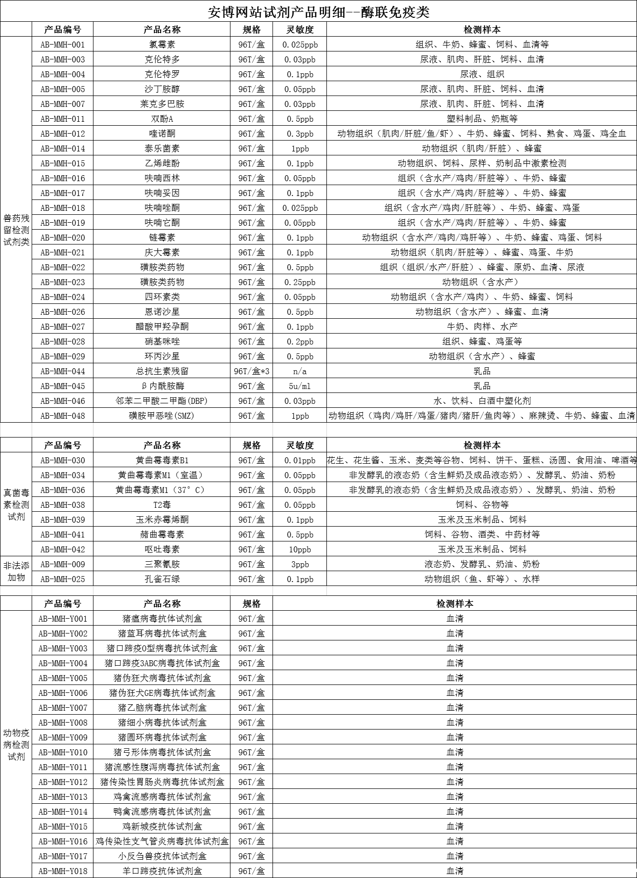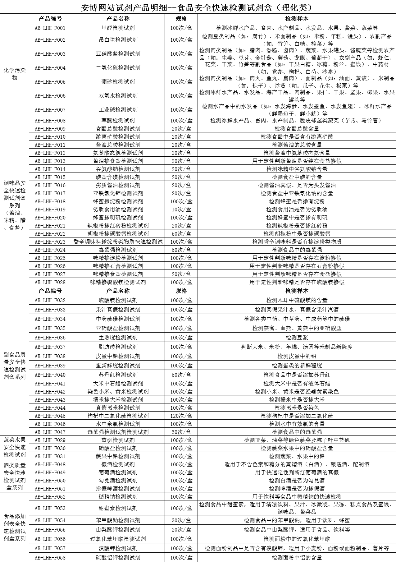 食品安全-单项检测系列